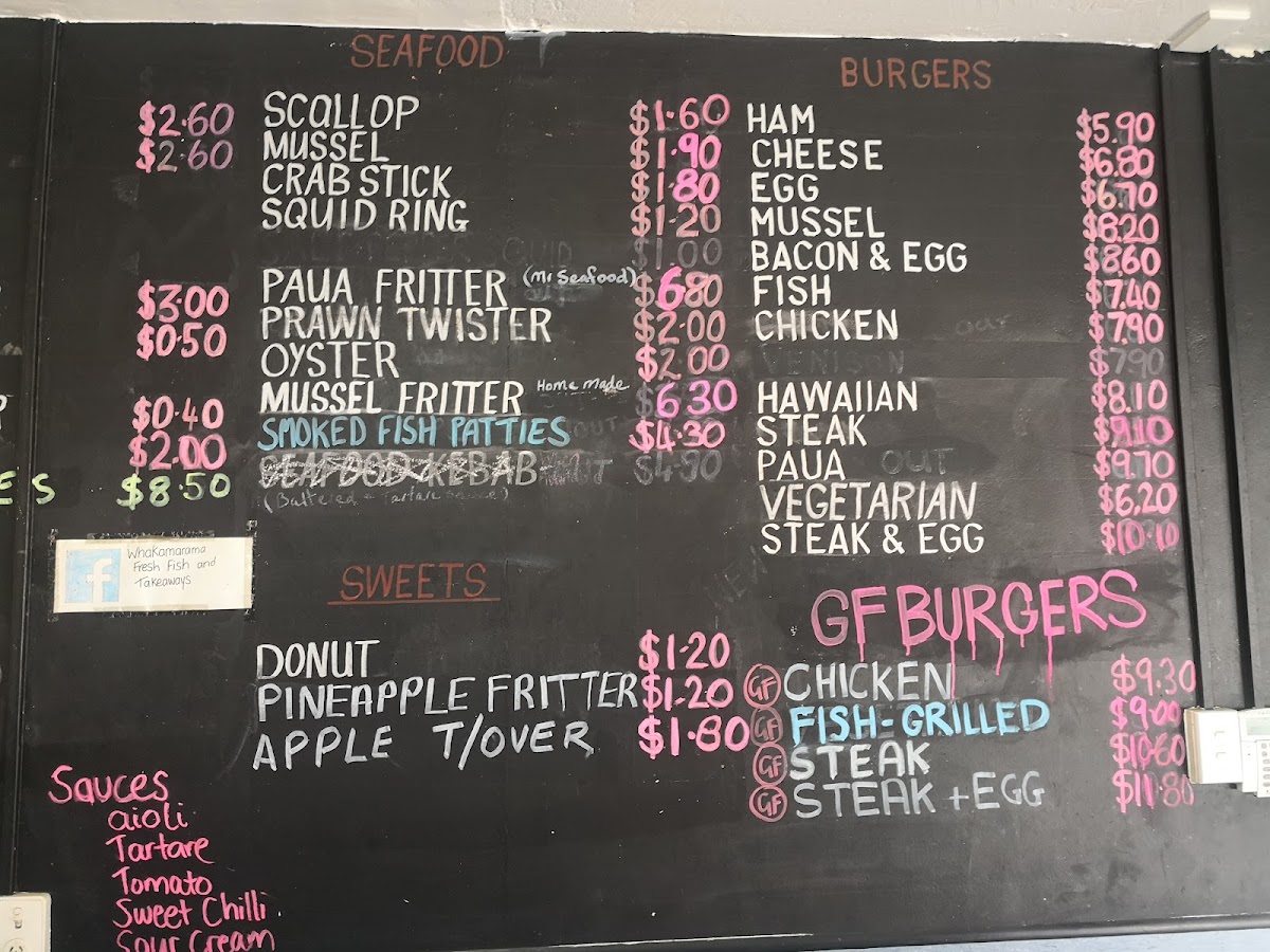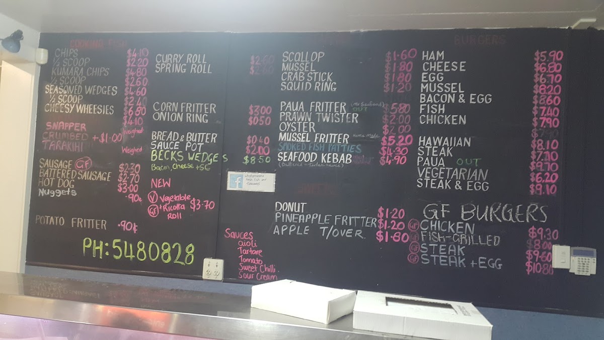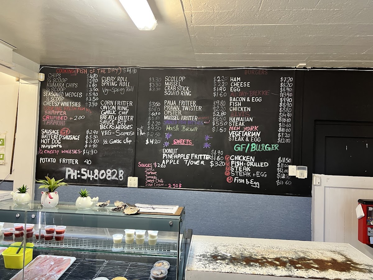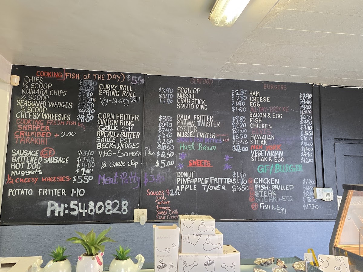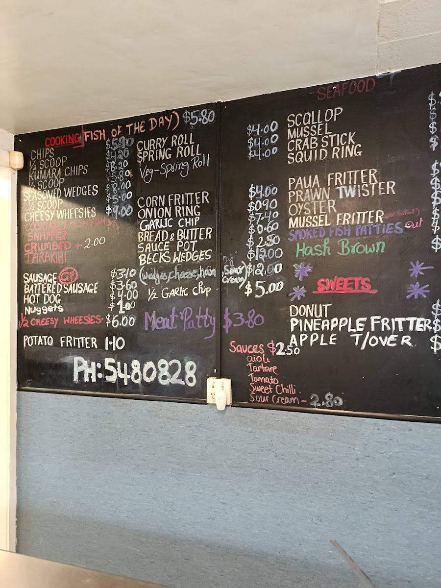 From a reviewer’s perspective, the menu at Whaka Seafood And Takeaways at 1103 Corner Sh 2 and Barrets Road, Tauranga South, presents a diverse selection that caters to both seafood lovers and those craving classic takeaway comfort food. The Cooking Fish Of The Day options, served with Chips, Kumara Chips, or Seasoned Wedges, highlight the freshness of their seafood, alongside lighter bites like Cheesy Wheesies. For seafood enthusiasts, the menu offers Scallop, Mussel, Crab Stick, Squid Ring, and Paua Fritter, all promising a taste of New Zealand’s coastal flavors. Burger fans can choose from hearty options including Steak, Ham, Cheese, Egg, and All-Day-Brekkie, with a gluten-free alternative of Steak + Egg. A variety of Sauces, such as Aioli, Tartare, and Tomato, allow for personalized flavor enhancement. For those with a sweet tooth, Pineapple Fritter, Donut, and Apple T/Over round out the menu, while other distinctive offerings like Fish-Grilled, Steak+Egg, and Smoked Fish Patties demonstrate the kitchen’s versatility. Overall, the menu balances traditional takeaway favorites with fresh seafood, offering something for everyone while keeping prices straightforward and approachable.